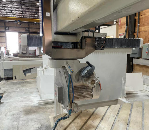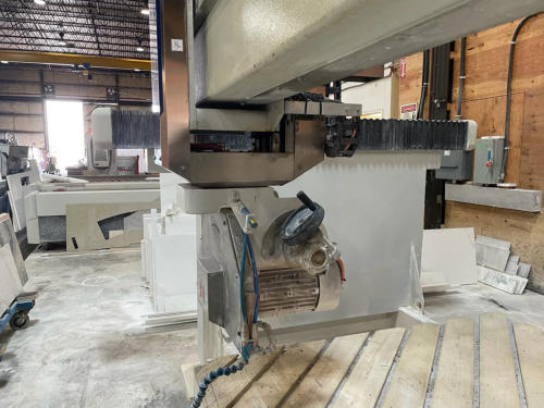 4 Axis CNC bridge Saw - available for sale Located in Vancouver BC - Canada 15HP motor, glavanized structure with tilting table, 24” max disc, miter cut and head rotates to 90 degree. See brochure for more info For Price please contact us